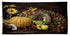 The artwork is a still life painting depicting a rustic autumn scene. It includes a prominently featured bright orange pumpkin resting on a wooden surface. Surrounding the pumpkin are various autumn elements, such as an overturned basket spilling gourds, apples, and vibrant fall leaves. Sunflowers and other seasonal flowers add color and texture, enhancing the warm, earthy tones that dominate the piece. The overall composition exudes a sense of harvest and thanksgiving.