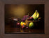 A stunning realistic still-life oil painting of reflections on an antique brown bean pot portrays a mood and drama that is commonly seen in baroque style paintings. The richness of colors and details of the fruit and basket are exuberant in this masterfully painted still life. One can almost feel the texture of the strawberries.