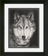 A stunning portrait drawing in charcoal of a North American gray wolf keeping watch in the dark of night. Wolves roam over large territories and are built for distance running. The coat or fur of a gray wolf can be many shades of gray, tan, brown, rusty red, cream, solid black, and white. Wolves have large teeth, and jaws with a bite force of 1,500 pounds per square inch, capable of crushing the thighbone of a moose.