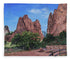 The two Gateway Rocks form a natural entrance to the Garden of the Gods. They both tower several hundred feet above the valley floor and are composed of fine grains of red-sandstone. Their color turns a deeper red immediately after a rainstorm, while the rays of a rising or setting sun seem to bring out softer hues of unsurpassed grandeur.