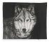 A stunning portrait drawing in charcoal of a North American gray wolf keeping watch in the dark of night. Wolves roam over large territories and are built for distance running. The coat or fur of a gray wolf can be many shades of gray, tan, brown, rusty red, cream, solid black, and white. Wolves have large teeth, and jaws with a bite force of 1,500 pounds per square inch, capable of crushing the thighbone of a moose.