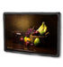 A stunning realistic still-life oil painting of reflections on an antique brown bean pot portrays a mood and drama that is commonly seen in baroque style paintings. The richness of colors and details of the fruit and basket are exuberant in this masterfully painted still life. One can almost feel the texture of the strawberries.