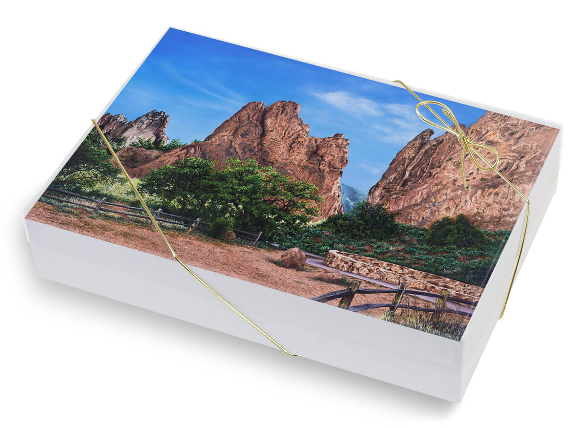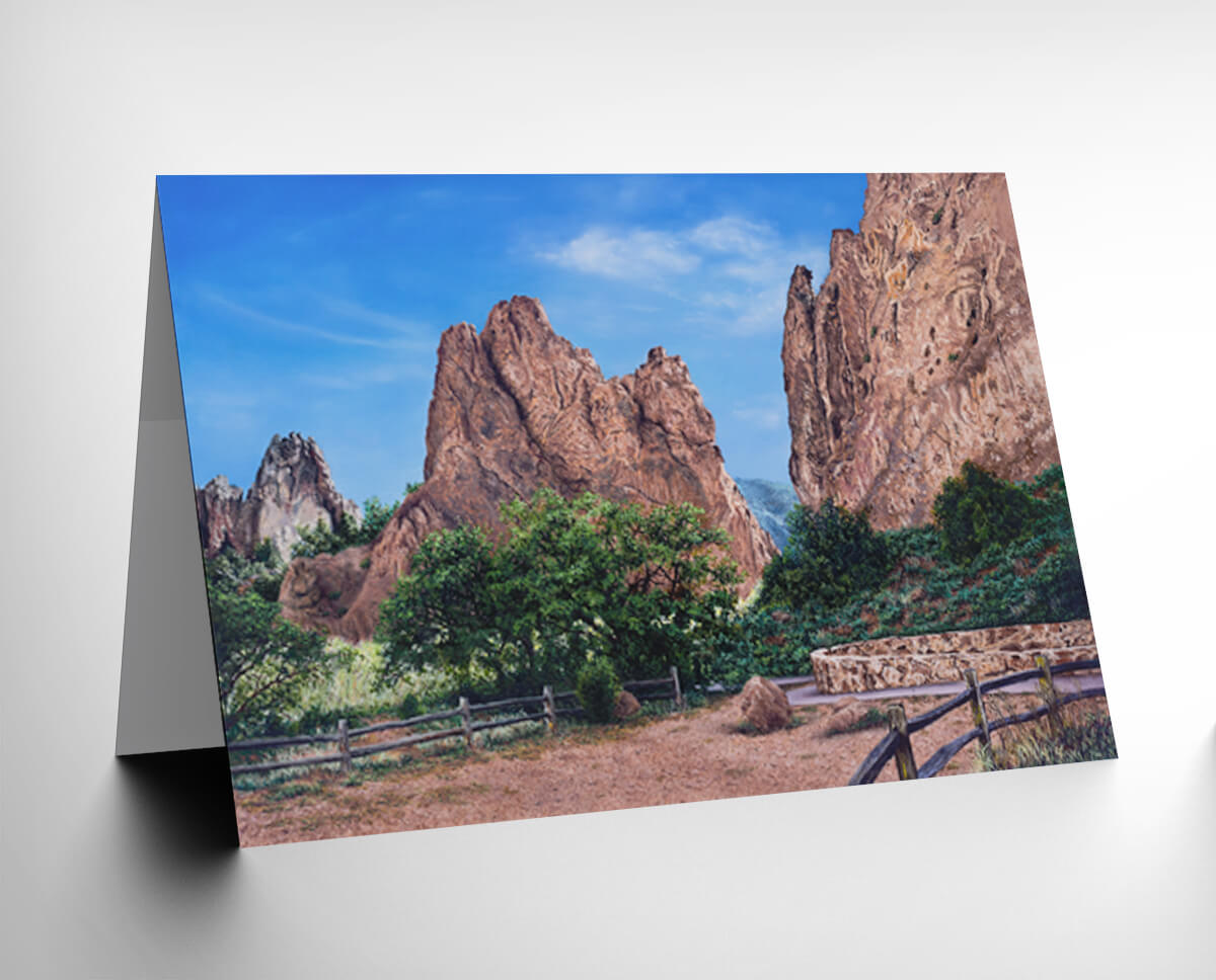 The two Gateway Rocks form a natural entrance to the Garden of the Gods. They both tower several hundred feet above the valley floor and are composed of fine grains of red-sandstone. Their color turns a deeper red immediately after a rainstorm, while the rays of a rising or setting sun seem to bring out softer hues of unsurpassed grandeur.
