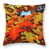 This artwork is a richly colored painting featuring a multitude of autumn leaves. The leaves are depicted in vibrant hues of orange, yellow, and red, showcasing a brilliant display of fall foliage. They are layered closely together, creating an intricate pattern with varied shapes and sizes. The background has patches of blue sky peeking through the dense cluster of leaves, adding depth and contrast to the composition. How can Mother Nature create something so joyful.